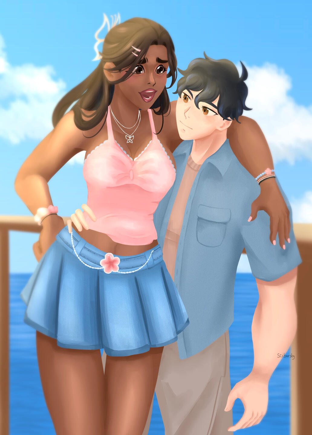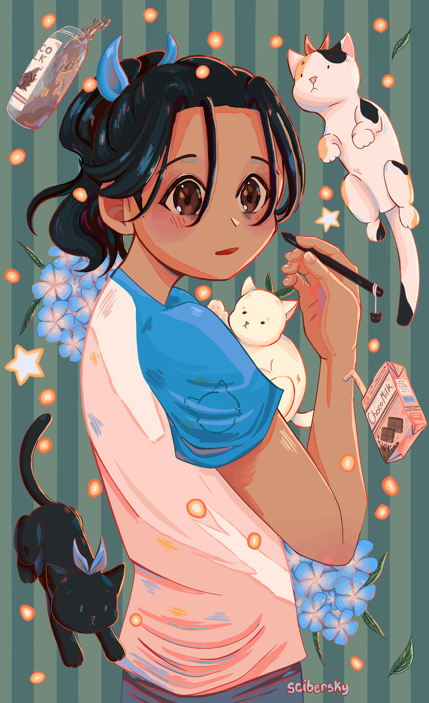 Ivy was from an orphanage in Gentiana. She was very distant from the other kids, often drawing or daydreaming alone. That was until Aviden, a child 2 years younger than her from the slums was introduced in the orphanage. Like Ivy, Aviden also had a difficult time with the other kids, often not being able to understand social cues. The two were often paired together by the caretakers since they didn’t wander off or cause trouble like the other kids. Despite this, the two were not friends and did not talk to each other.Aviden was later pushed by the caretakers to befriend Ivy. Since Aviden didn’t know how to get her attention, he grabbed her sketchbook and ran off, getting chased by a furious Ivy. Ivy started to attack him and the two got into a fight. Aviden had the upper hand because he had been in multiple fights in the past. He punched Ivy really hard and she fainted. From this day forward, Aviden has felt super guilty about what he did. He apologized many times to Ivy for punching her but Ivy was more mad that he took her sketchbook lol.After the incident, the two started to get closer. Aviden followed Ivy around everywhere, fascinated by her. Ivy viewed Aviden like an annoying bug who would fly around her face. She didn’t have any alone time to daydream anymore and she would get annoyed when he stared at her drawing. Eventually she got used to it and he became the only one she got comfortable with to watch her draw.Aviden was later adopted by a caring family from Rivervale. He cried for many days from having to separate from Ivy and never seeing her again.Aviden was adopted by a family from Rivervale. He later helped his relatives manage the town.Disclaimer: I have included Aviden’s modern au artwork here